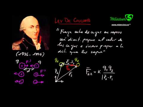- La magnitud de cada una de las fuerzas eléctricas con que interactúan dos cargas puntuales en reposo es directamente proporcional al producto de la magnitud de ambas cargas e inversamente proporcional al cuadrado de la distancia que las separa y tiene la dirección de la línea que las une. La fuerza es de repulsión si las cargas son de igual signo, y de atracción si son de signo contrario.